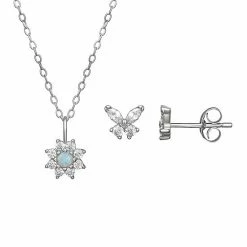 PRIMROSE Cubic Zirconia Stud Earrings & Cubic Zirconia & Opal Pendant Necklace Set Rose Gold Tone
