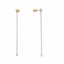PRIMROSE Polished Ball Stud Floating Cubic Zirconia & Chain Drop Earrings Two Tone Yellow Gold