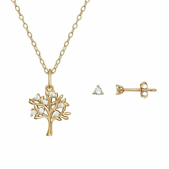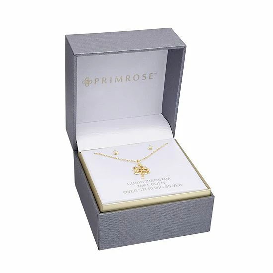 You’ll adore this PRIMROSE 18k gold over sterling silver set, featuring a tree pendant necklace and cubic zirconia stud earrings.