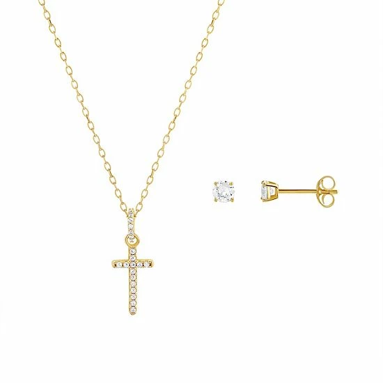 Keep a reminder of your faith with you at all times when you wear this elegant sterling silver cubic zirconia cross pendant and stud earrings set.