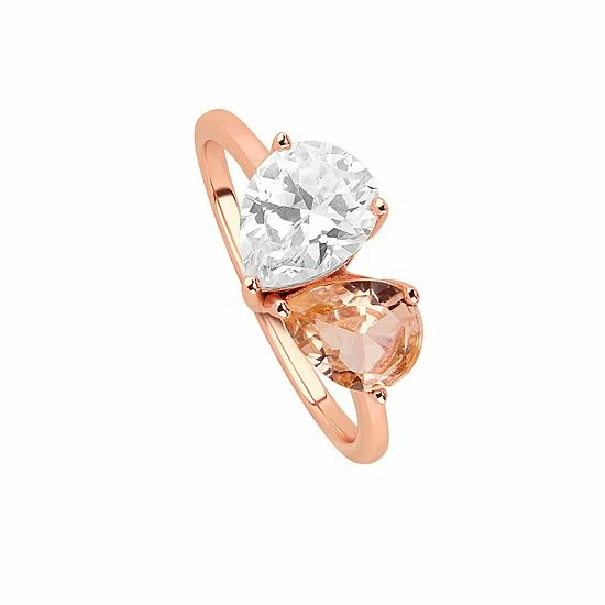 Decorated with a pair of dazzling CZs, this PRIMROSE 18k rose gold-over-silver ring is a simple, yet distinctive accessory.