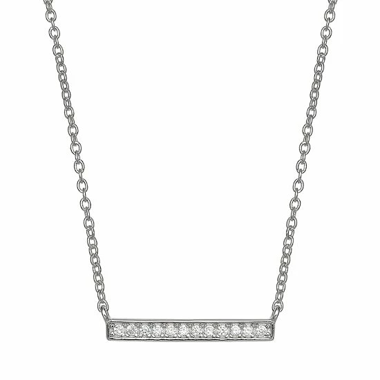 Adorned with a dazzling dozen CZ stones, this PRIMROSE sterling silver bar necklace is an eye-catching accent to your attire.