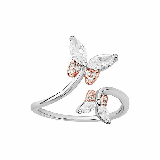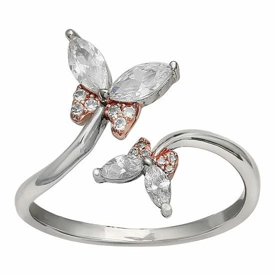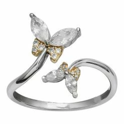 Treat yourself to the charming style of this PRIMROSE ring, featuring cubic zirconia butterflies.