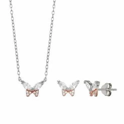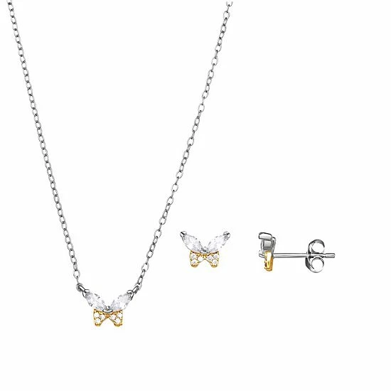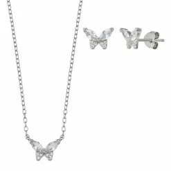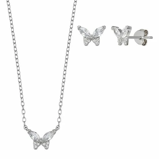 This adorable sterling silver cubic zirconia butterfly stud earring and pendant necklace set is a must-have for any fan of the beautiful insect.