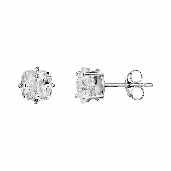 PRIMROSE delivers striking style with these cushion cut cubic zirconia stud earrings.