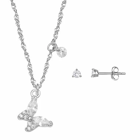 This luminous sterling silver necklace and earring set is adorned with beautiful cubic zirconia stones for a sparkling effect.