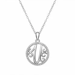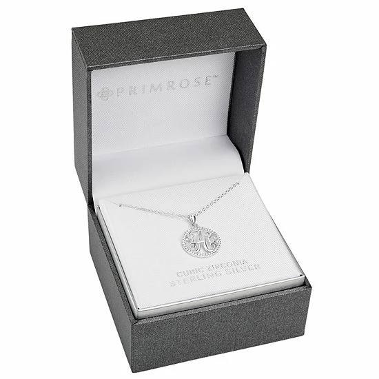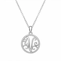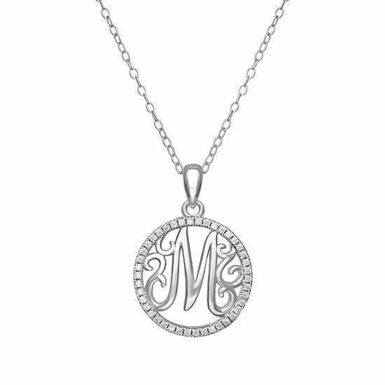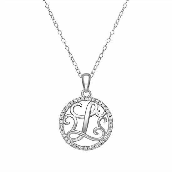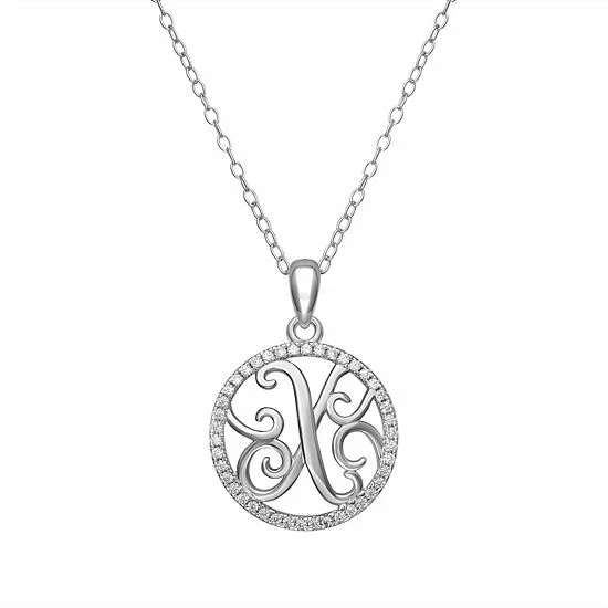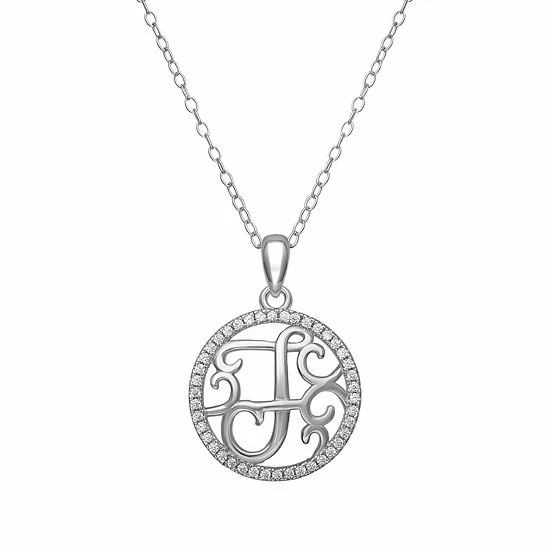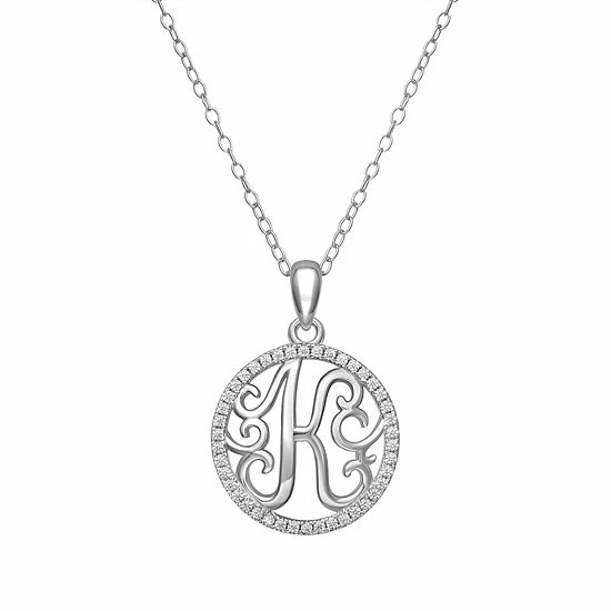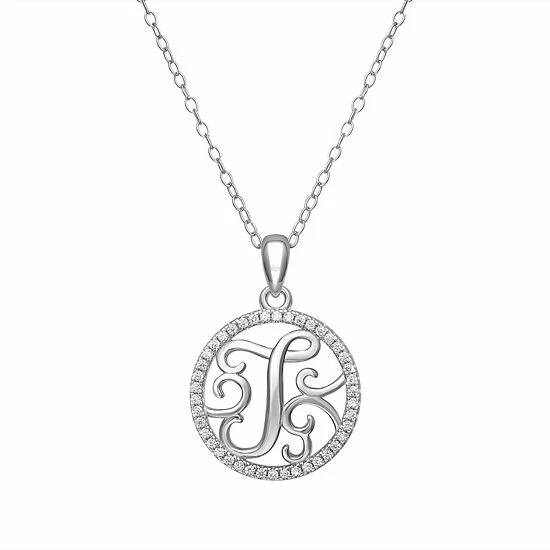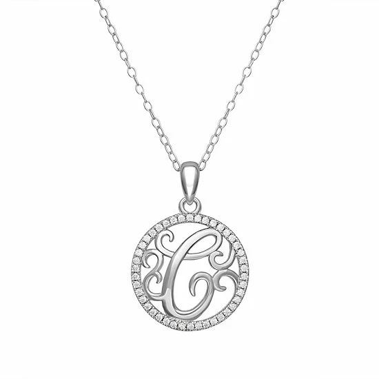 Accessorize with personal style with this initial pendant necklace, adorned with cubic zirconia stones and elegant flourishes.