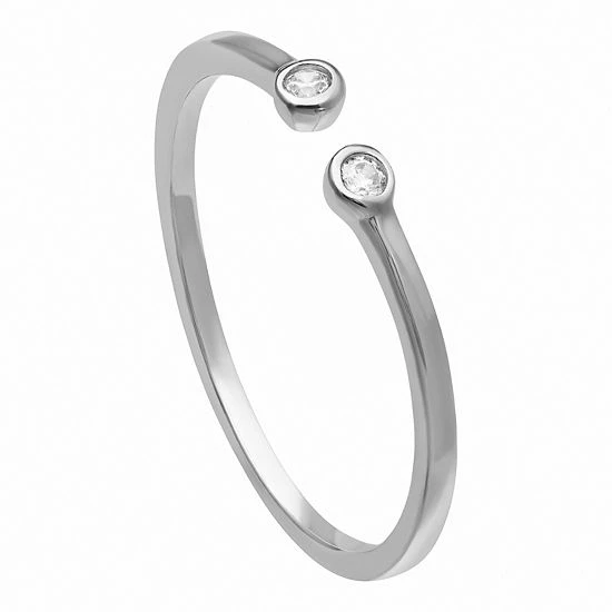 Decorated with a pair of dazzling CZs, this PRIMROSE sterling silver ring is a simple, yet distinctive accessory.