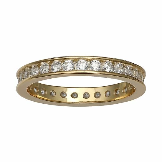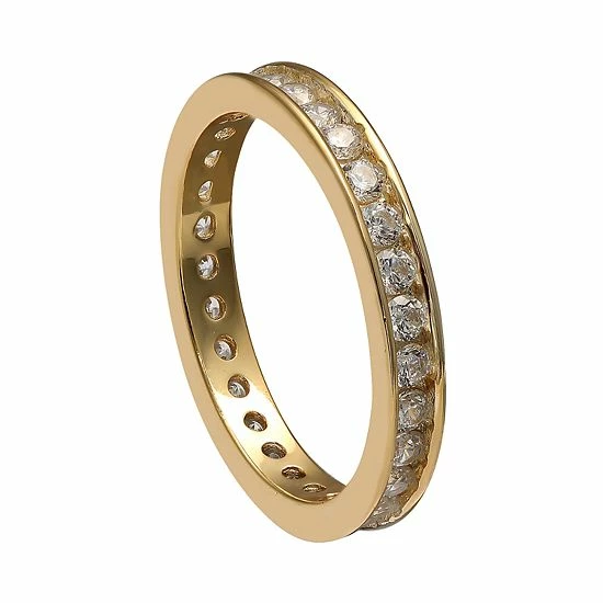 Lined with dazzling channel-set cubic zirconia stones, this sterling silver ring radiates alluring elegance.
