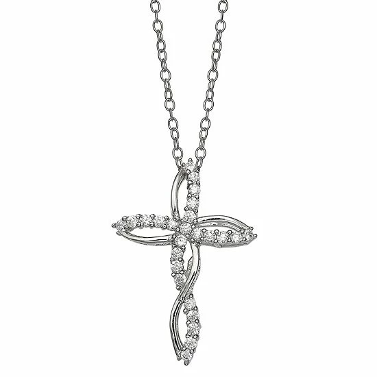 This twisted cross pendant necklace from PRIMROSE features gorgeous cubic zirconia stones for a radiant look.