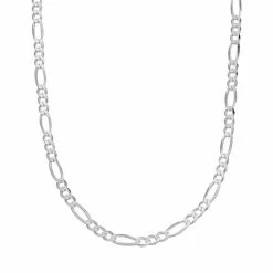 This sterling silver PRIMROSE necklace is sure to get you noticed. The three-in-one figaro chain catches the light, making it a head-turning accessory. Top off any ensemble with this striking necklace.
