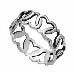 Featuring interlocking sterling silver hearts, this PRIMROSE ring offers sweet style.