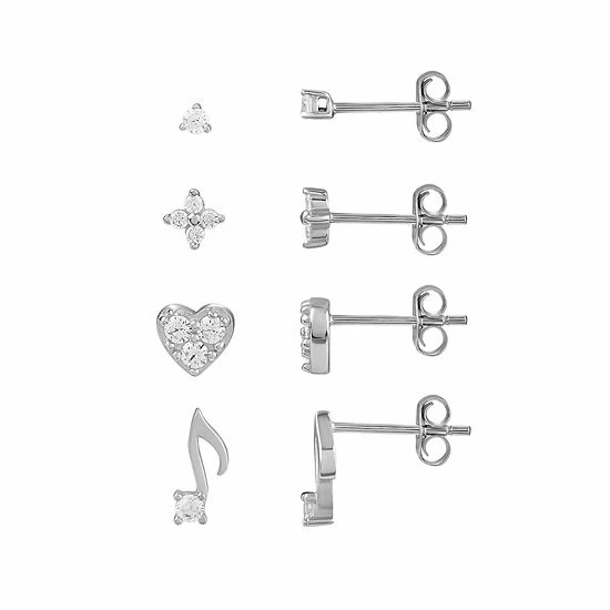 This unique music note, flower and heart stud earring set is the perfect way to add some variety to your daily look.