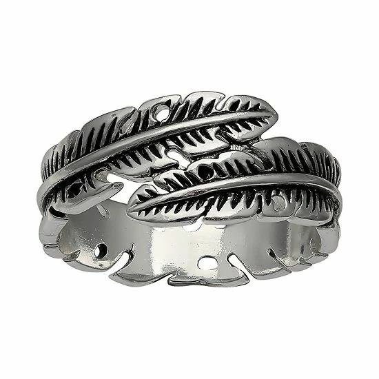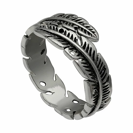Featuring a feather motif and oxidized details, this PRIMROSE ring adds distinctive style to your wardrobe.