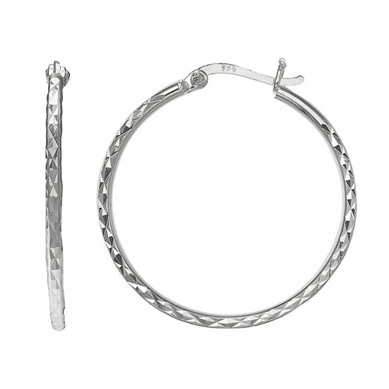 Adorned with diamond-cut details, these sterling silver hoop earrings offer a lustrous look.
