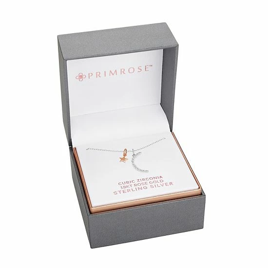 Accessorize with stellar style when you wear this PRIMROSE cubic zirconia crescent moon necklace.